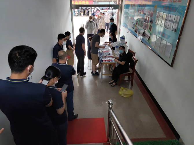 上午10:30全體員工有秩序的排隊等待檢測,公司2名行政人員負責(zé)登記、1名社區(qū)工作者在現(xiàn)場宣傳引導(dǎo),僅用半小時完成公司所有員工的核酸檢測任務(wù),為企業(yè)安心發(fā)展提供強力支持和貼心服務(wù)。